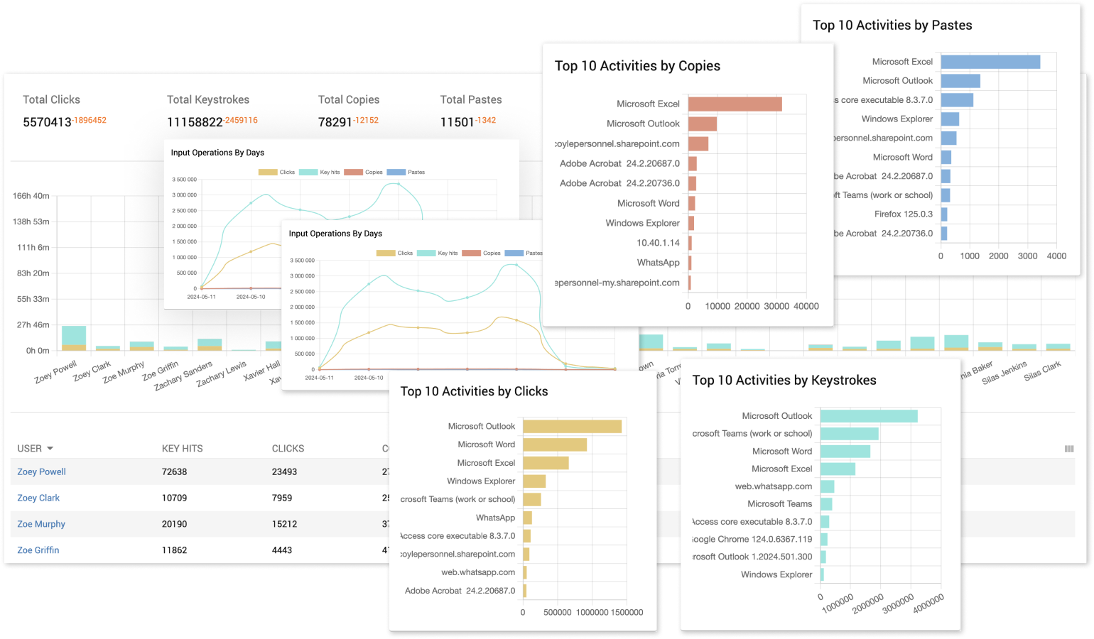 Access comprehensive computer usage reports that detail the number of clicks, keystrokes, and copy-paste actions performed by each employee, and use these insights to analyze work patterns, such as excessive repetitive tasks, data duplication, and workflow bottlenecks.
