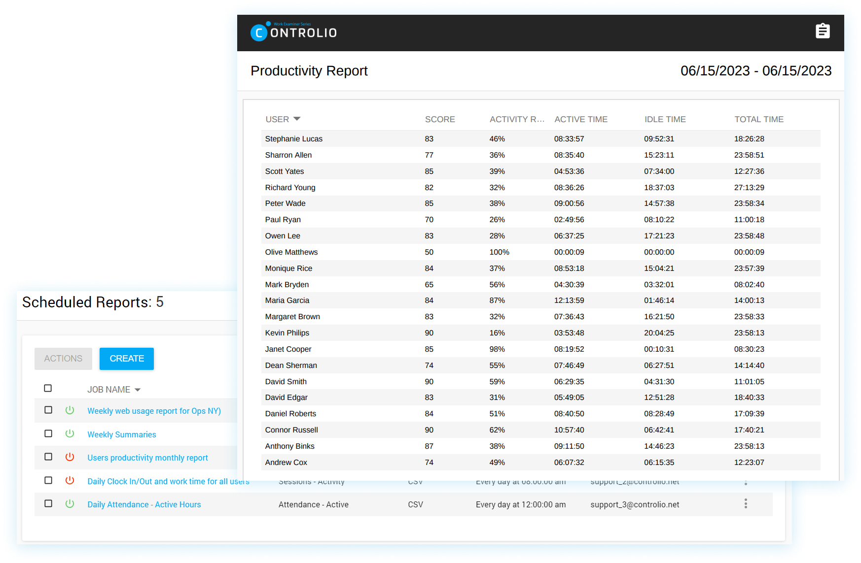 Use automatically generated KPIs to effectively assess and compare the productivity of individual employees, different teams, or a whole company across various time spans.