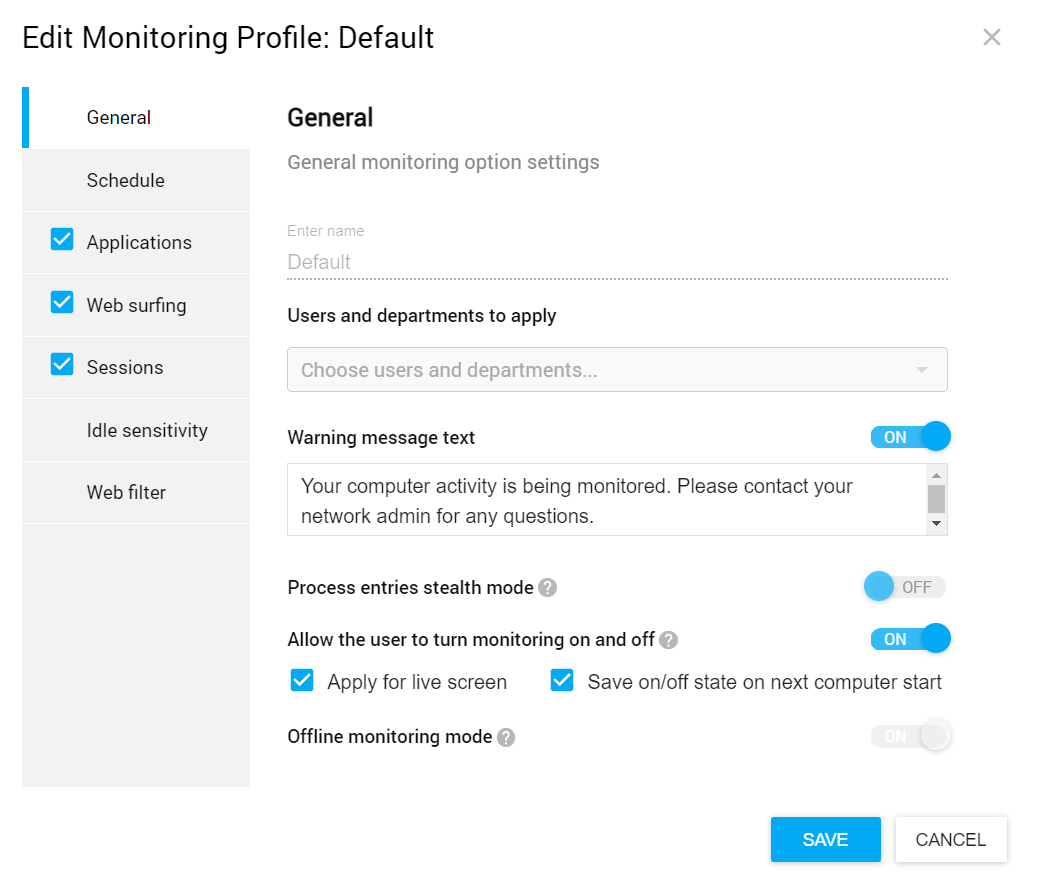 And with the help of the warning message that can be set up to appear infront of the user each time the monitoring session starts, you can ensure that the monitored user is informed as required by the GDPR regulations.