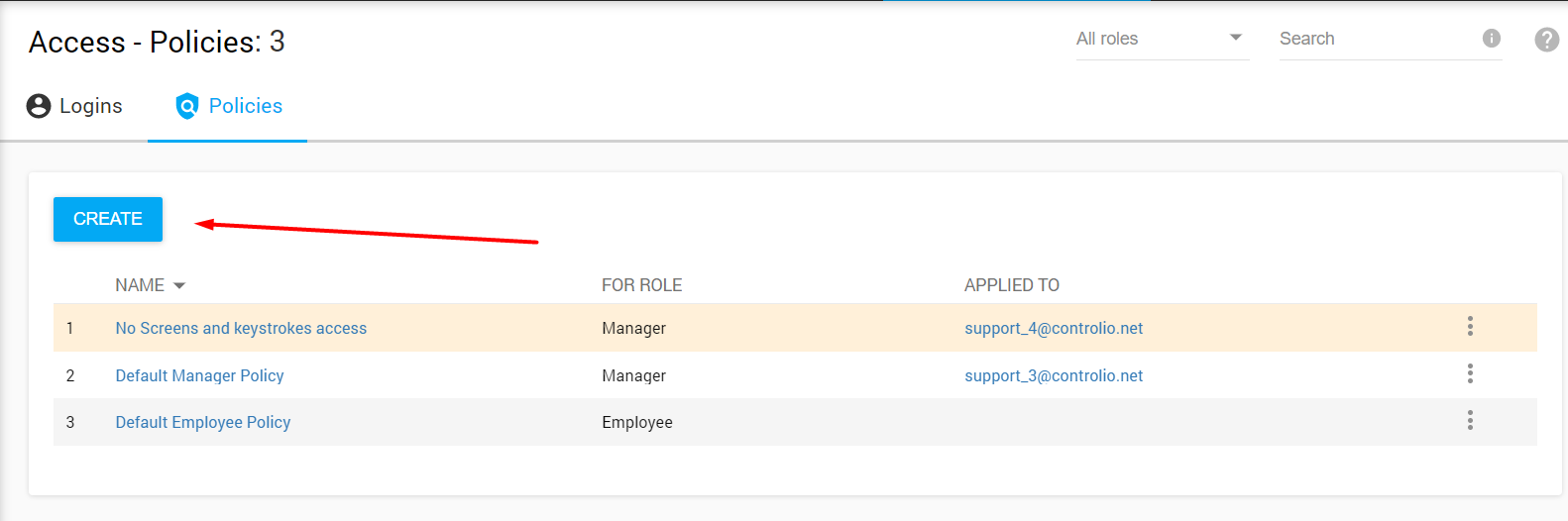 Click Create from Access – Policies page: