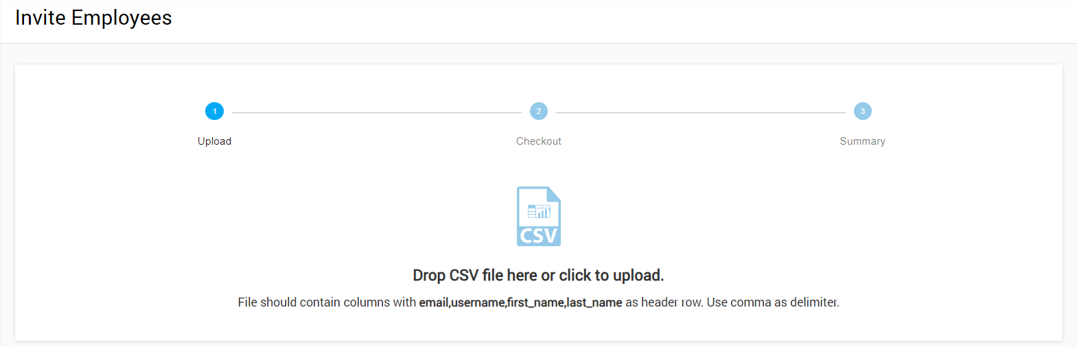 If you want to provide access to the dashboard for many managers/employees at once, you may upload a CSV file that contains all of their login data.