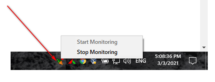 - Allow the user to turn monitoring on and off: When enabled, it shows a taskbar icon with a start/stop monitoring menu for non-invasive monitoring.