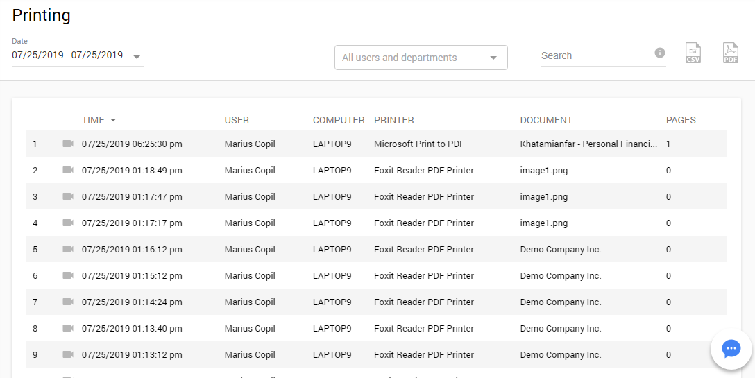 The Printing report lets you see what and how much is being printed by each team member. This can go a long way in helping you curb unnecessary expenditure and increase the security of your team’s intellectual property.