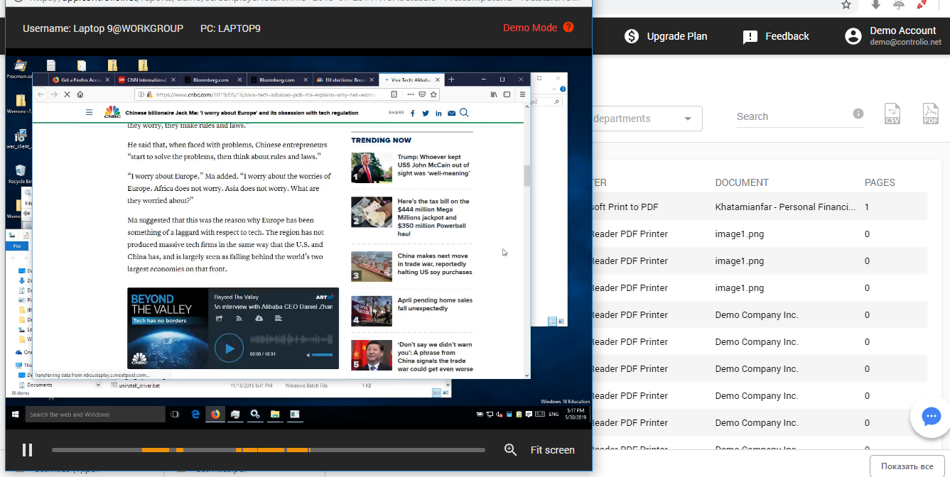 If you suspect unusual printing activity for a report line item, you can click on the video icon opposite the date of that activity. This function shows you a short video screen-capture of what was displayed on the employee’s screen at the time of printing. The video will help you determine if the print was for private or work purposes, and if it was a document or image.