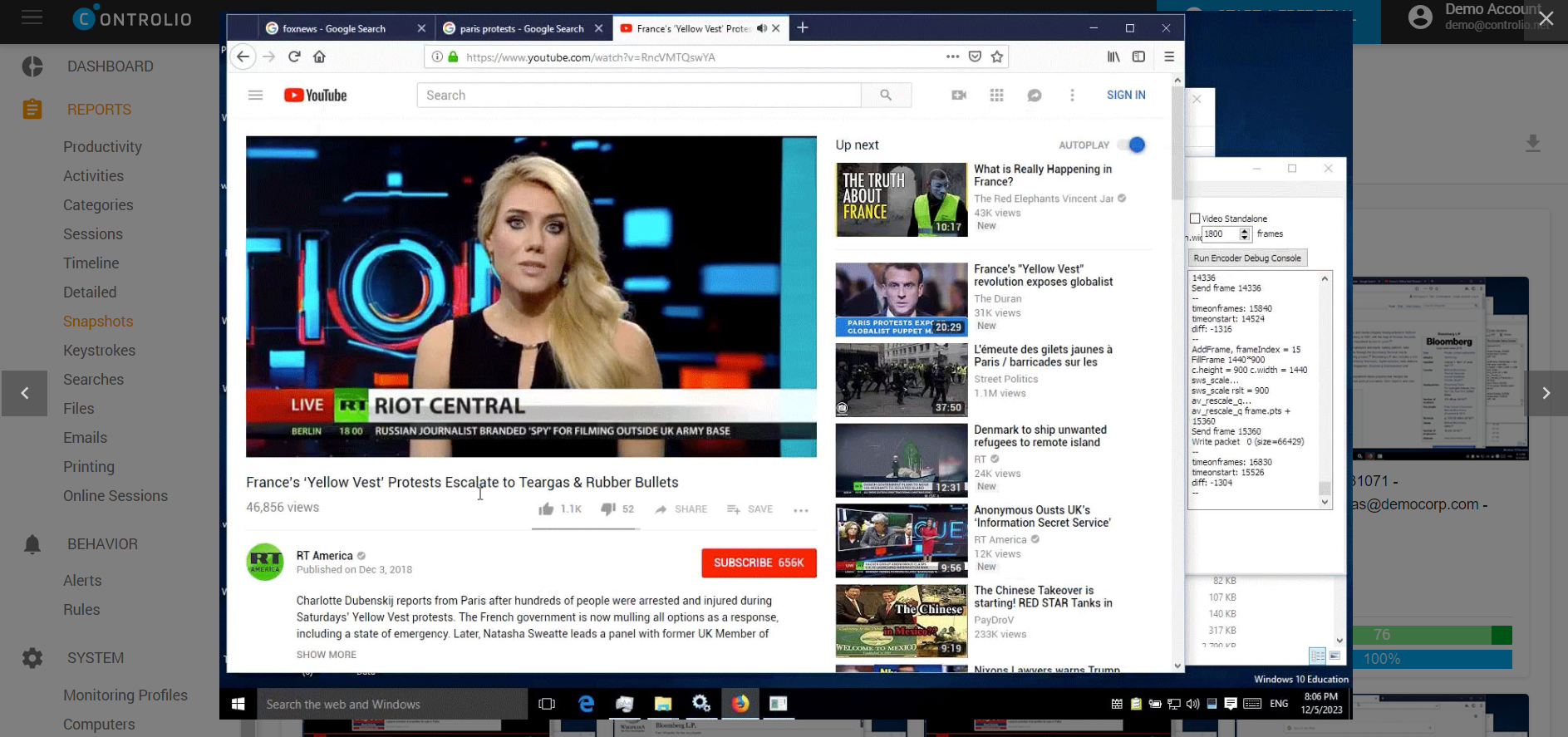 Snapshots are quick previews of the screen recording that are taken with a periodicity of 5 minutes typically used to help you visually navigate your way throughout work hours to detect any abnormalities. A snapshot folder will be available for each user on each day with a brief productivity summary.