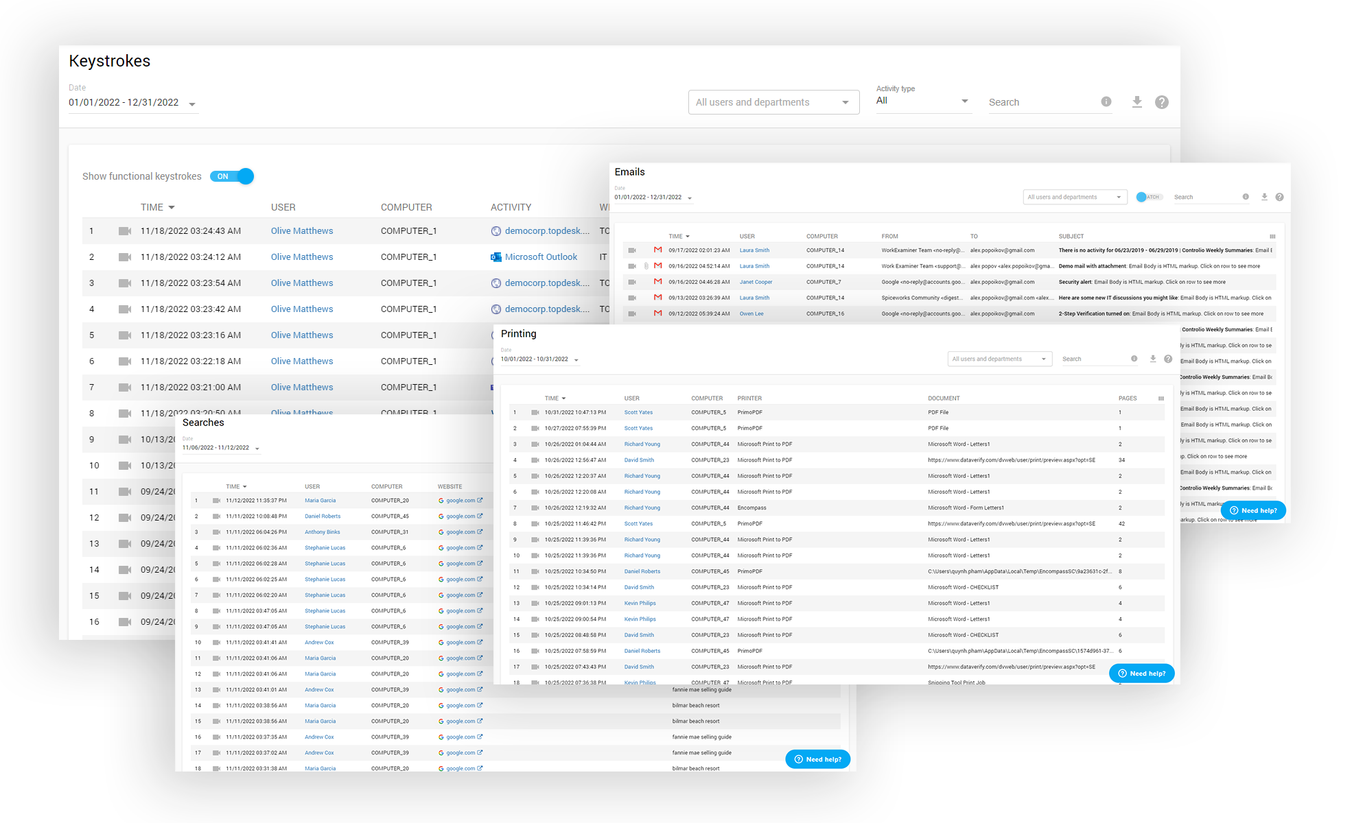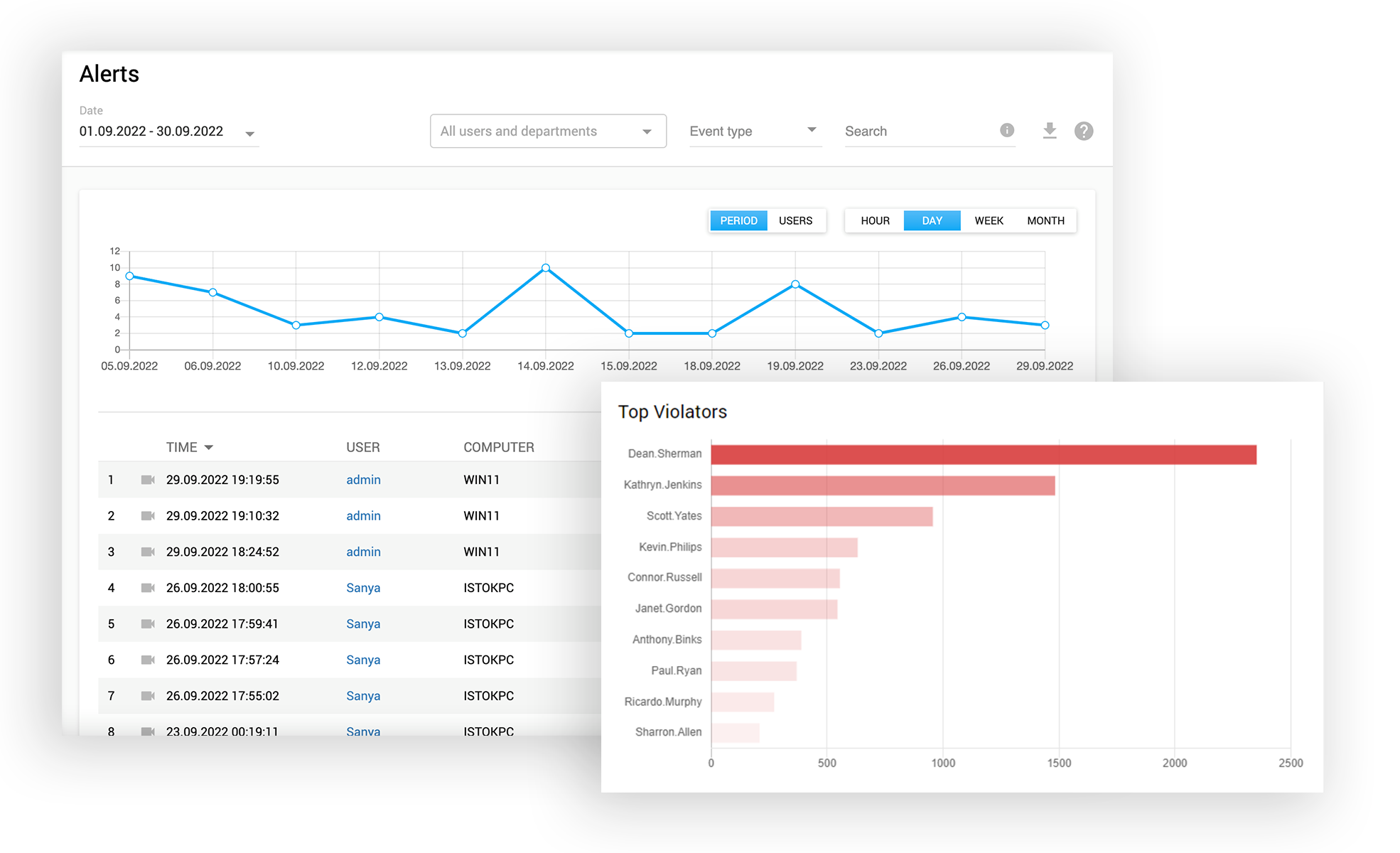 Respond to modern cybersecurity challenges with strong protective measures based on reliable User and Entity Behavior Analytics. Use smart Think Track’s algorithms, comprehensive statistics, and advanced data processing to shield your business from insider and outsider threats.