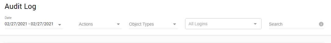 - By default, the audit log displays all the types of objects, however, you can use the Quick-search box Filter to look for actions on specific objects, e.g., ‘LA users