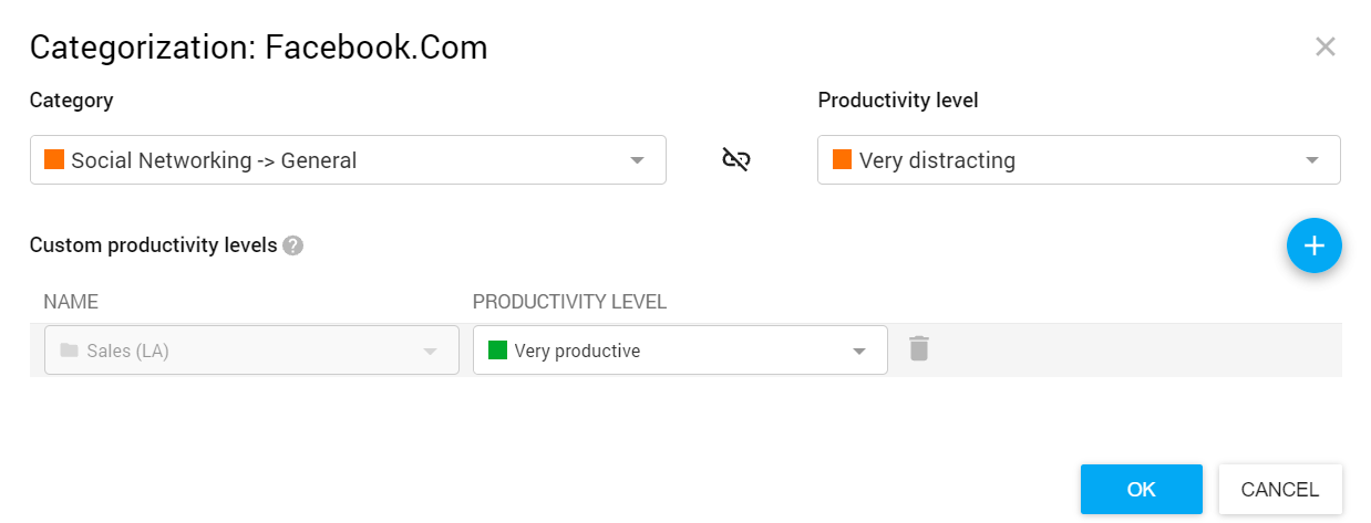 - Edit settings – Configures if a manager may edit activities’ categories & productivity levels of employees within his departments by creating a custom categorization rule.