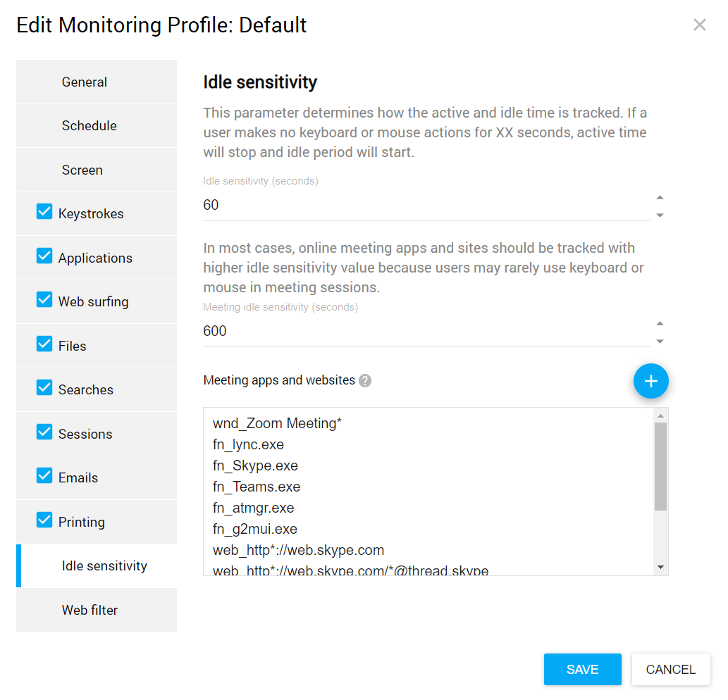 We understand that employees rarely tend to make any keyboard or mouse interactions during meetings, so we designed a custom idle sensitivity for meeting apps and websites to reflect idle time more accurately.