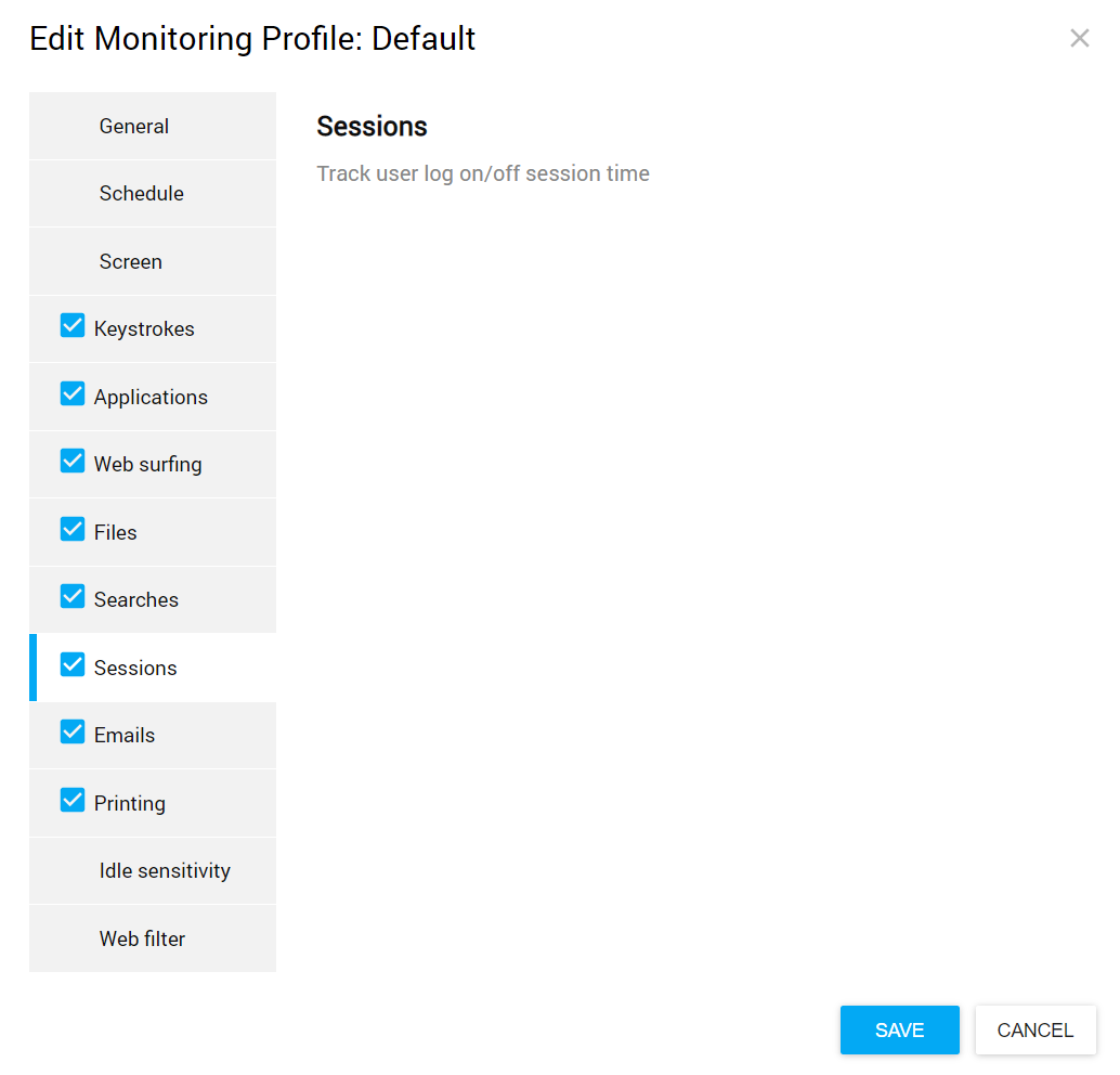 Monitoring profiles grant you the ability to control which type of information will be collected precisely. You may create as many monitoring profiles as needed and assign each of them to a specific group of users or departments. For example, you may enable screen monitoring for a group of employees and have them monitored from 8 AM to 5 PM; on the other hand, you can disable screen monitoring for another group of employees and have them monitored at all times.