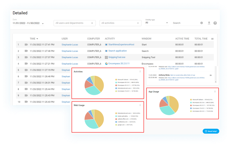Get a detailed record of each Window or URL employees accessed