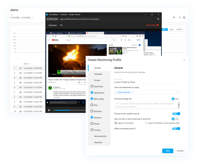 Avail of robust screen recording capabilities allowing you to inspect activity on multiple screens simultaneously